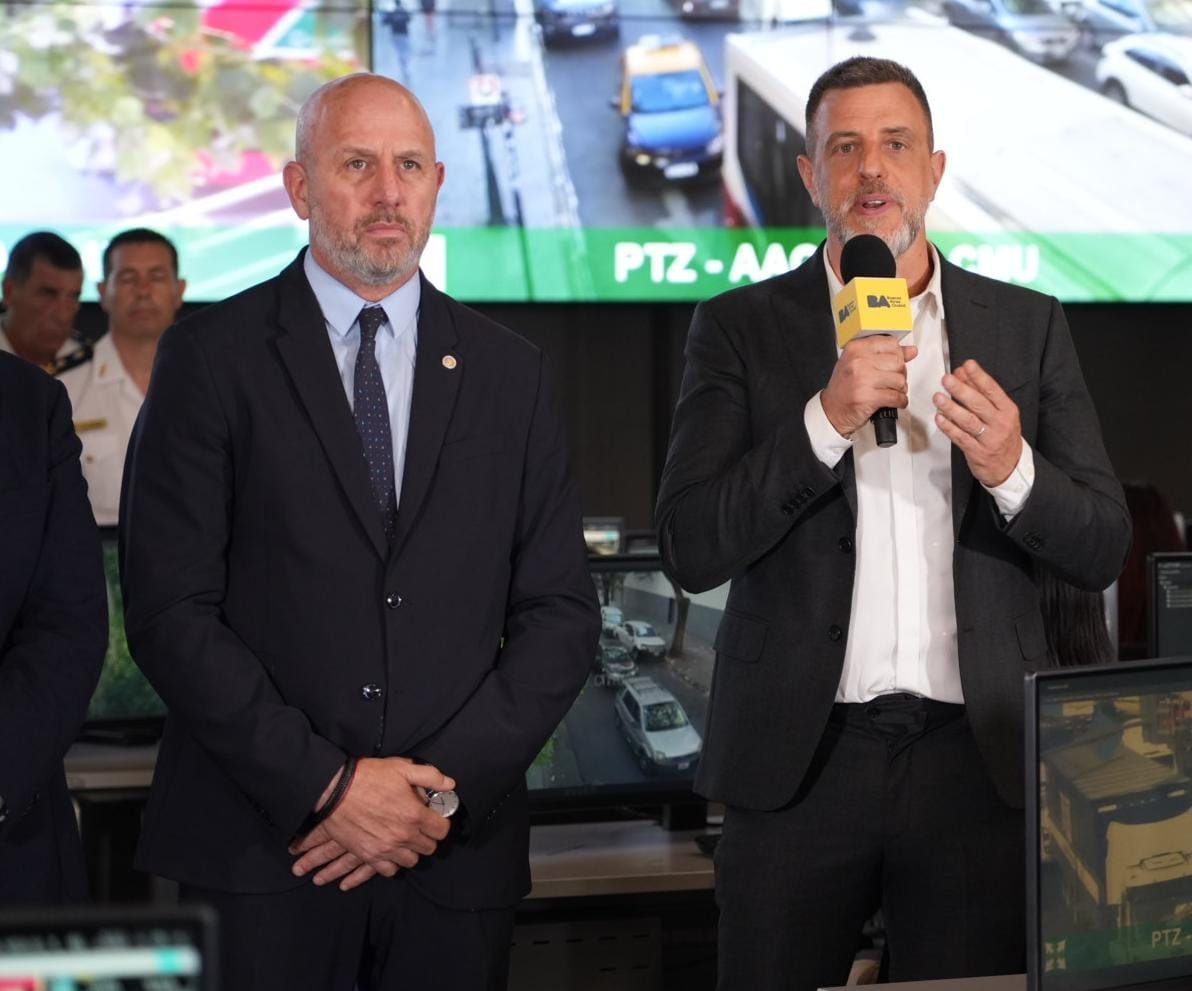 Jorge Macri, flamante jefe de Gobierno porteño, junto al ministro de Seguridad, Waldo Wolff, presentaron hoy en el Centro de Monitoreo Urbano (CMU) de Chacarita la nueva estructura de la Policía de la Ciudad, designando al actual secretario de Seguridad, Diego Kravetz, como nuevo jefe y al Comisario General Oscar Passi como subjefe de la Policía porteña.