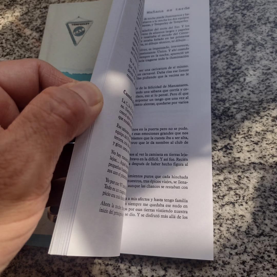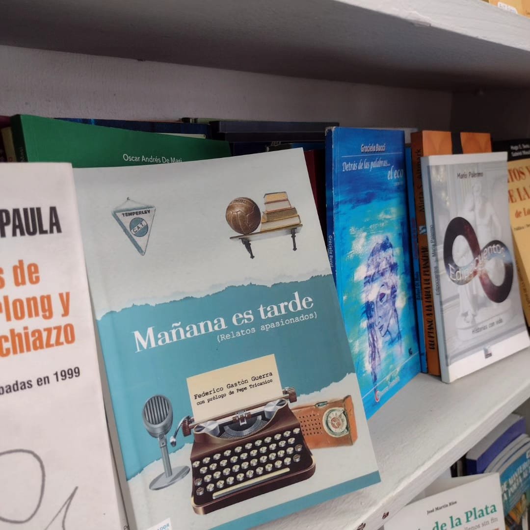 “Cruzamos la calle empedrada, entramos al café La Poesía. Lugar de poetas y bohemios que guarda en sus mesas ese aire tan de entonces de Buenos Aires. Miré, apenas, el diario y me di cuenta que su sonrisa era tan potente como ese sol tibio que pedía permiso para colarse entre las sillas”, se lee en una de las primeras columnas de “Mañana es Tarde”, de Editorial El Señalador, libro papel de Federico Gastón Guerra, historiador y periodista. En este trabajo repasa, a modo de columnas y artículos, opiniones, vivencias personales y profesionales que van desde los inicios del fútbol, crónicas de su club Temperley hasta los orígenes de la radio y los hinchas.