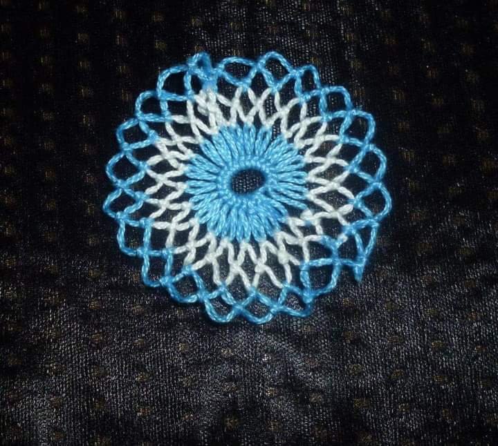 El tejido básico se complementa estirando la malla en un bastidor de madera o de alambre. Primariamente se lo hacía con espinas de quimil y luego con pajitas de escoba. Este paso consta de tres etapas: tejer la malla o trama, tejer la puntilla y luego unir estas dos para finalmente colocar en el bastidor y bordar.