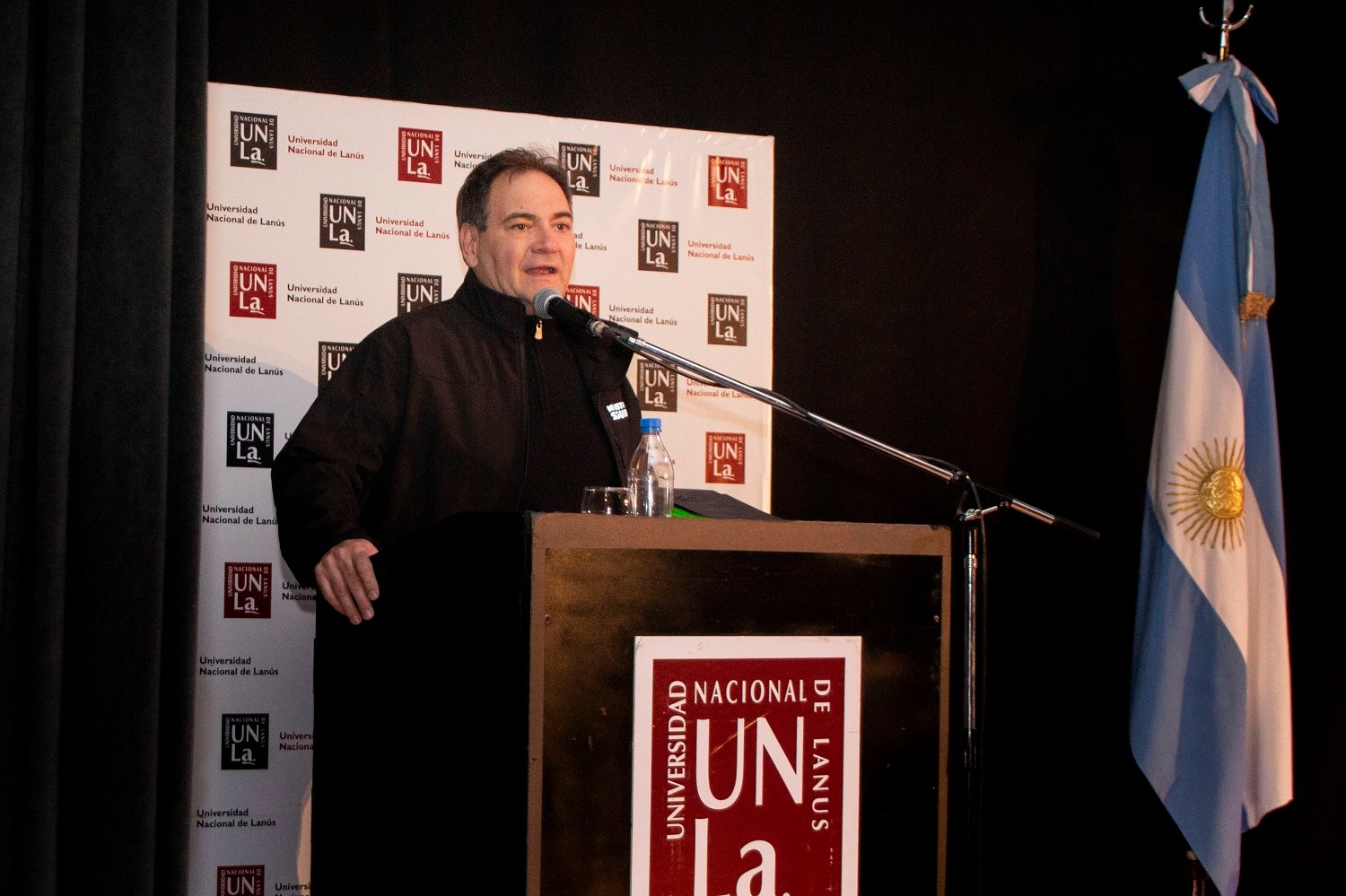El evento contó la presencia del ministro de Seguridad bonaerense, Javier Alonso, y su par de Justicia y Derechos Humanos, Juan Martín Mena, el rector de la UNLa, Daniel Bozzani, y el intendente de Lanús, Julián Álvarez.