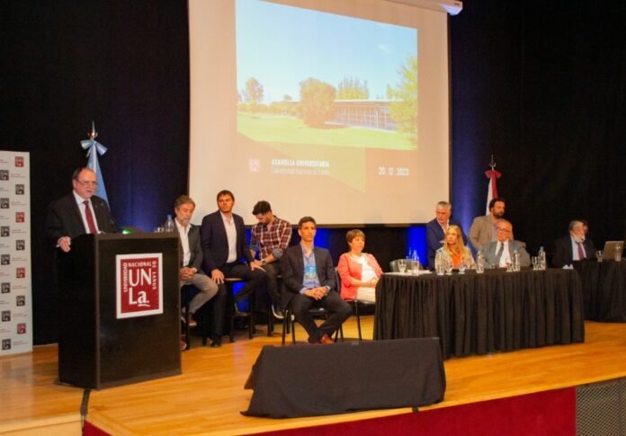 Bozzani leyó el informe de gestión basado en 6 pilares: Gobierno y Gestión; Gestión Académica; Investigación Científica y Vinculación Tecnológica; Cooperación y Bienestar Universitario; Gestión Administrativa e Infraestructura; y Comunicación. En los mismos pilares se basó el Plan de Acción Anual 2024.