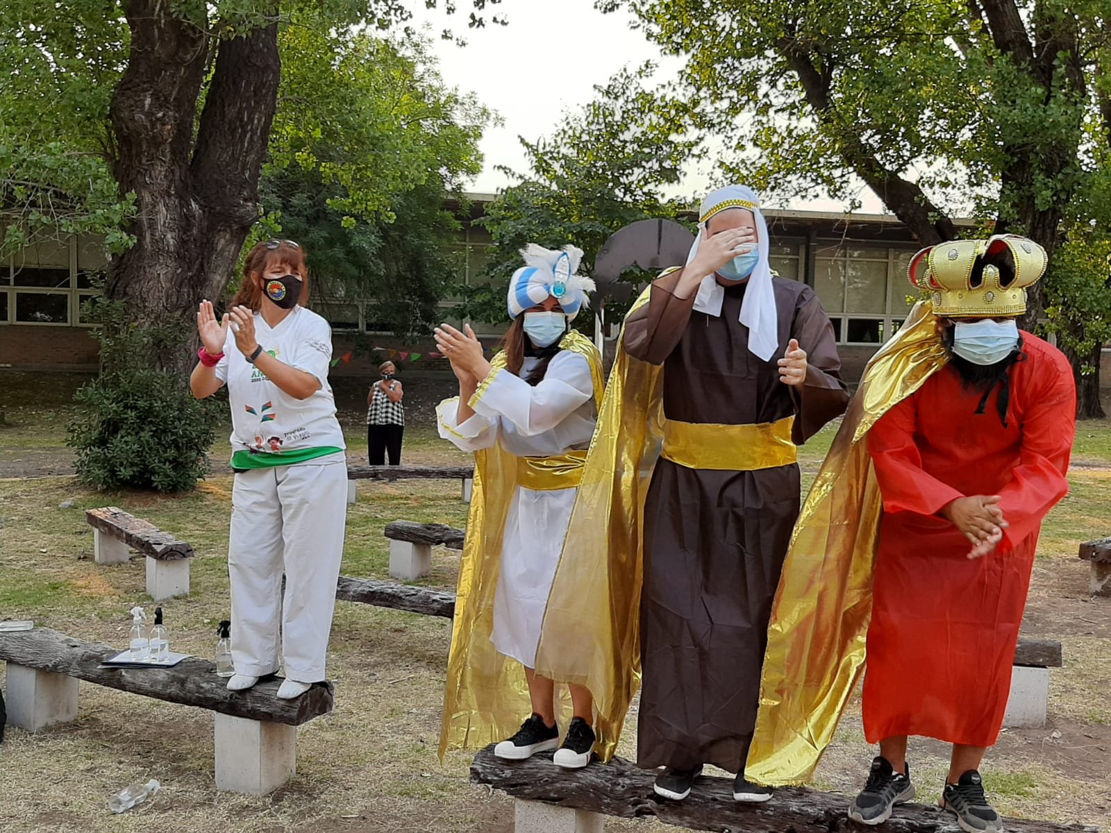 También una vez a la semana, los chicos disfrutan de la visita de los Reyes Magos, quienes entregan regalos: kits escolares, un juego de pelotitas con instrucciones para hacer malabares y comparten leche chocolatada, barritas de cereales y golosinas.
