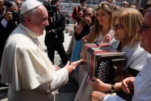 El Sumo Pontífice saludó la iniciativa y la bendijo cuando le fue presentada por la rectora de la Universidad, Ana Jaramillo. En aquella ocasión, además el bandoneón fue presentado en la “Giornata Argentina di commercializzazione de Moda, Arte, Disegno, Enogastronomia e Turismo” organizada por la Embajada Argentina en Italia.