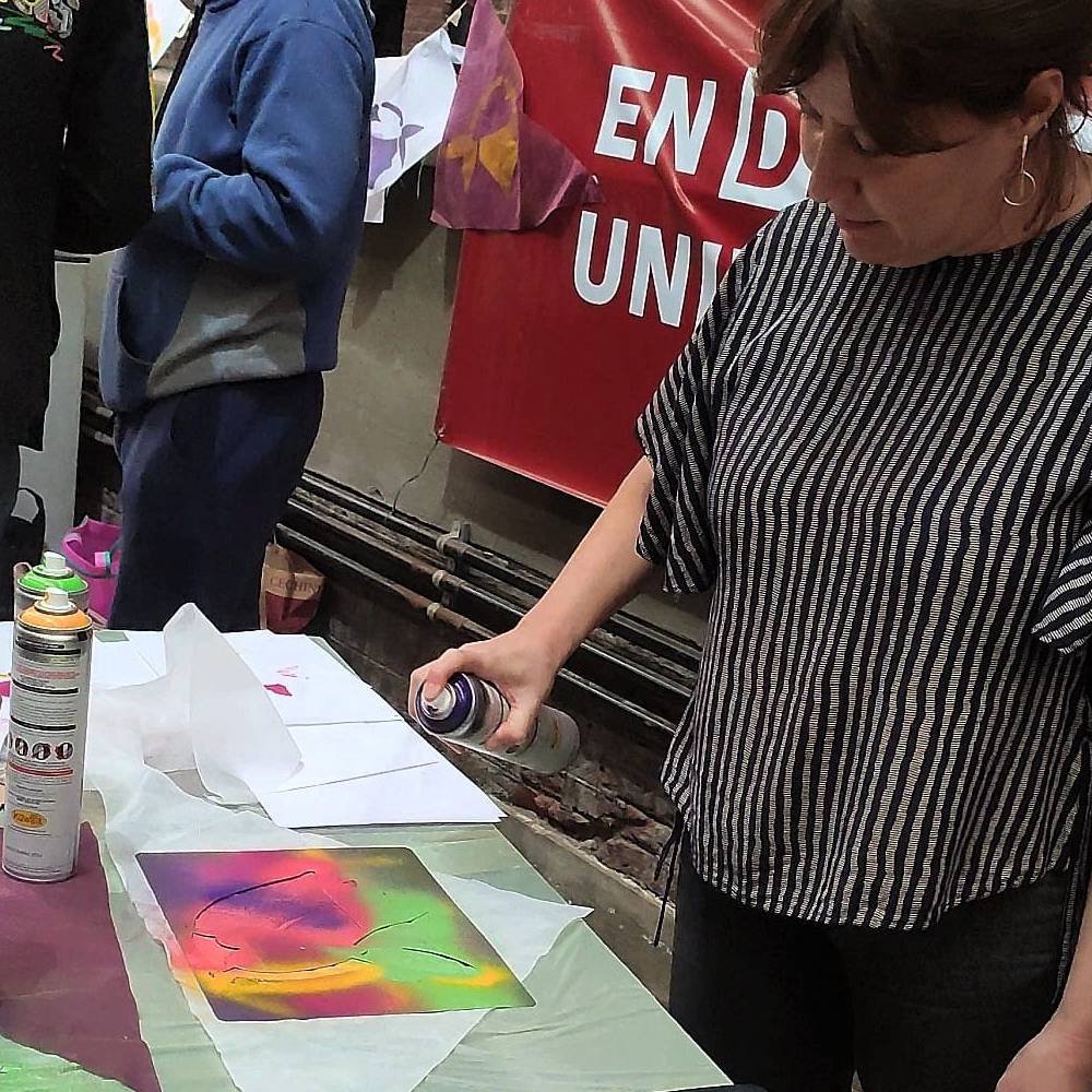 Los asistentes llevaron afiches, cartón, banderas, cartulinas, extencil, remeras o lo que quisieron pintar con fibras y aerosol. Luego sacaron fotos y las subieron a las redes sociales.