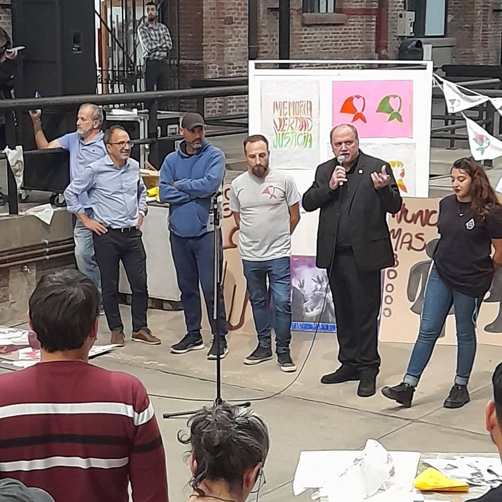 Además compartió con los presentes un comunicado de ATUNLa que había salido minutos antes, respecto a lo que fue noticia respecto al atentado a la militante de la Organización HIJOS, donde manifiesta su enérgico repudio y continúa: “A 48 años de la página más oscura y siniestra de nuestra historia, tenemos la obligación de reafirmar de manera inclaudicable que la Argentina ha sido víctima de uno de los genocidios más aterradores de la historia universal, con el aparato estatal torturando, exterminando y desapareciendo a más de 30.000 argentinos y argentinas, robando todos sus bienes personales y a sus más de 300 hijos e hijas arrebatados de sus brazos y a los que sus abuelas buscan con amor, dando ejemplo, mostrando un camino de dignidad, con memoria, por la verdad y con justicia, sin venganza y sin odio. Nos solidarizamos con los familiares de las víctimas del terrorismo de Estado, que a lo irremediable de sus tragedias, ahora deben tolerar un Gobierno que los ataca y los estigmatiza de manera insensible. Creemos que esta provocación, a días de la movilización del 24 será otro motivo más para salir este domingo y movilizar, a lo largo y ancho de nuestra patria, para reafirmar un camino que los argentinos y argentinas hemos transitado juntos desde 1983”.