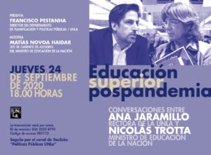 El Departamento de Planificación y Políticas Públicas de la Universidad Nacional de Lanús (UNLa) organizará conversatorio sobre la educación superior pospandemia, con la participación del Ministro de Educación de la Nación, Nicolás Trotta, y la rectora de la UNLa, Ana Jaramillo.