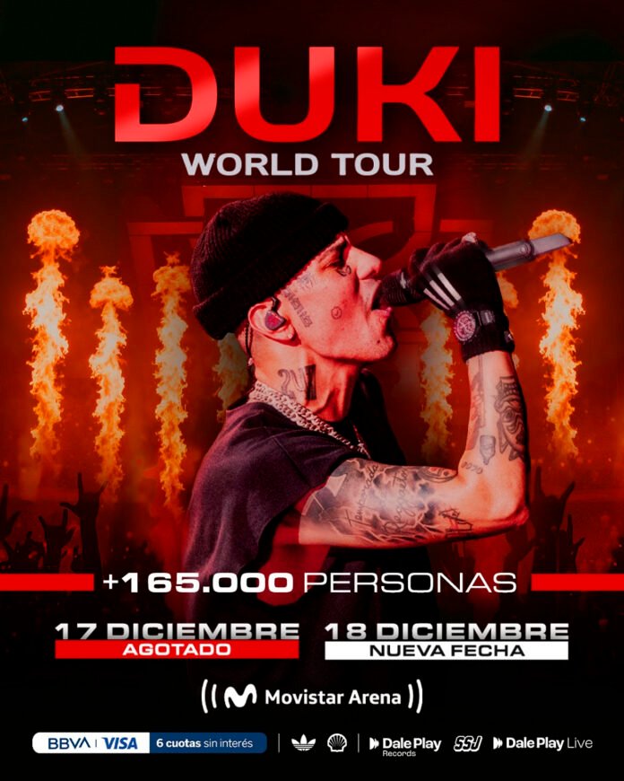 Duki no detiene su marcha. En medio de una gira internacional que lo posiciona como uno de los artistas urbanos más convocantes del continente, el referente del trap argentino anunció una nueva fecha en el Movistar Arena para el 18 de diciembre, sumando así su presentación número 12 en ese recinto porteño.