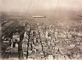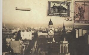 El dirigible que a los pocos minutos de asomarse por el Sur llegó a la Capital Federal impuso su porte sobre: la avenida Alem, las calles 25 de Mayo, Reconquista y San Martín. El edificio Central de Correos y el edificio de la Aduana.
