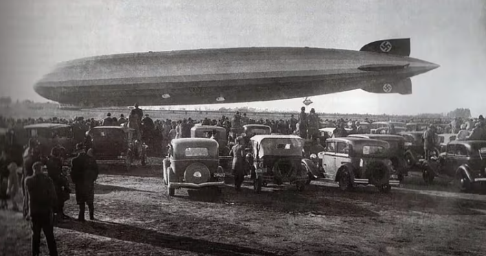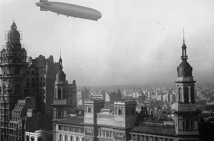 “El 30 de junio de 1934, en un frío amanecer porteño, la inmensa silueta del LZ 127 Graf Zeppelin surcó los cielos rumbo a Campo de Mayo, donde centenares de conscriptos aferraron por más de una hora los cables de amarre que unían la nave con la tierra”, se lee en la Historia del Siglo XX del diario LA NACIÓN.