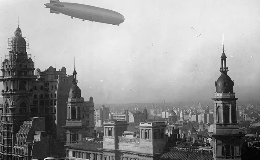 “El 30 de junio de 1934, en un frío amanecer porteño, la inmensa silueta del LZ 127 Graf Zeppelin surcó los cielos rumbo a Campo de Mayo, donde centenares de conscriptos aferraron por más de una hora los cables de amarre que unían la nave con la tierra”, se lee en la Historia del Siglo XX del diario LA NACIÓN.