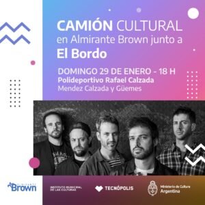 Finalmente, el domingo 29 a partir de las 18 horas llega a Rafael Calzada el Camión Cultural con una propuesta bien rockera: bajo la conducción de Vane Gonzalez tocarán las bandas Almas Desiertas, Reliquia de Buitres, Gordo Larvo y, para el final, un broche de oro a cargo de El Bordo.