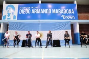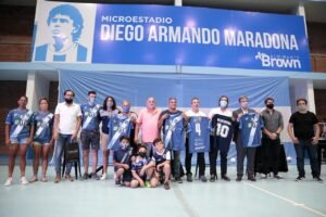 Con este acto las autoridades brownianas dieron cumplimiento a la Ordenanza N 12.156 que en su artículo 1° dispone «impóngase el nombre DIEGO ARMANDO MARADONA al Microestadio del Polideportivo Municipal de Ministro Rivadavia, como homenaje a quien fuera en vida el mejor jugador de fútbol mundial».