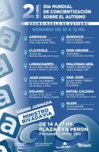 Desde la gestión del intendente interino Juan Fabiani precisaron que las jornadas tituladas “Brown Habla de Autismo” incluirán la realización de talleres, charlas informativas, actividades culturales y la tradicional suelta de globos azules, todo con el objetivo de sensibilizar a la comunidad sobre la necesidad de contribuir a mejorar la calidad de vida de las personas con autismo.