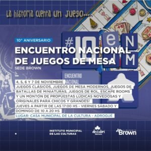 Este jueves 4, viernes 5, sábado 6 y domingo 7 de noviembre llega a Almirante Brown la décima edición del Encuentro Nacional de Juegos de Mesa.