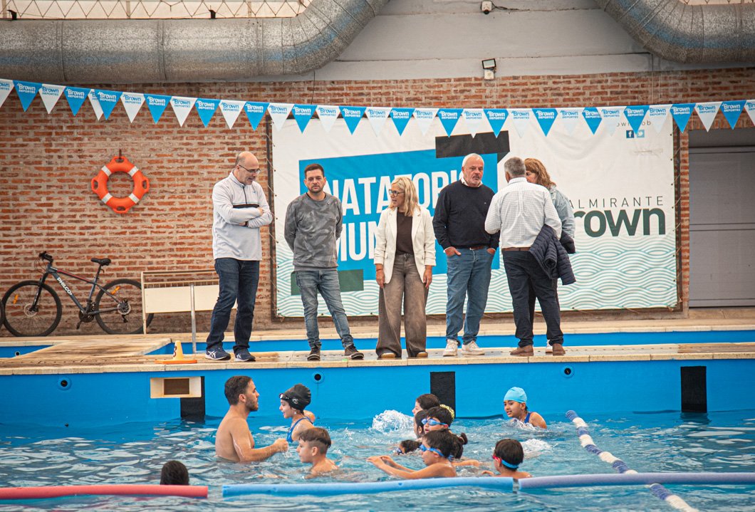 En el marco de la apertura del ciclo 2026 del programa municipal “Todos al Agua”, el intendente interino de Almirante Brown, Juan Fabiani y la jefa de Gabinete local, Paula Eichel, visitaron el Natatorio Municipal de Ministro Rivadavia donde diariamente más de 500 chicos aprenden a nadar y disfrutan de actividades acuáticas.