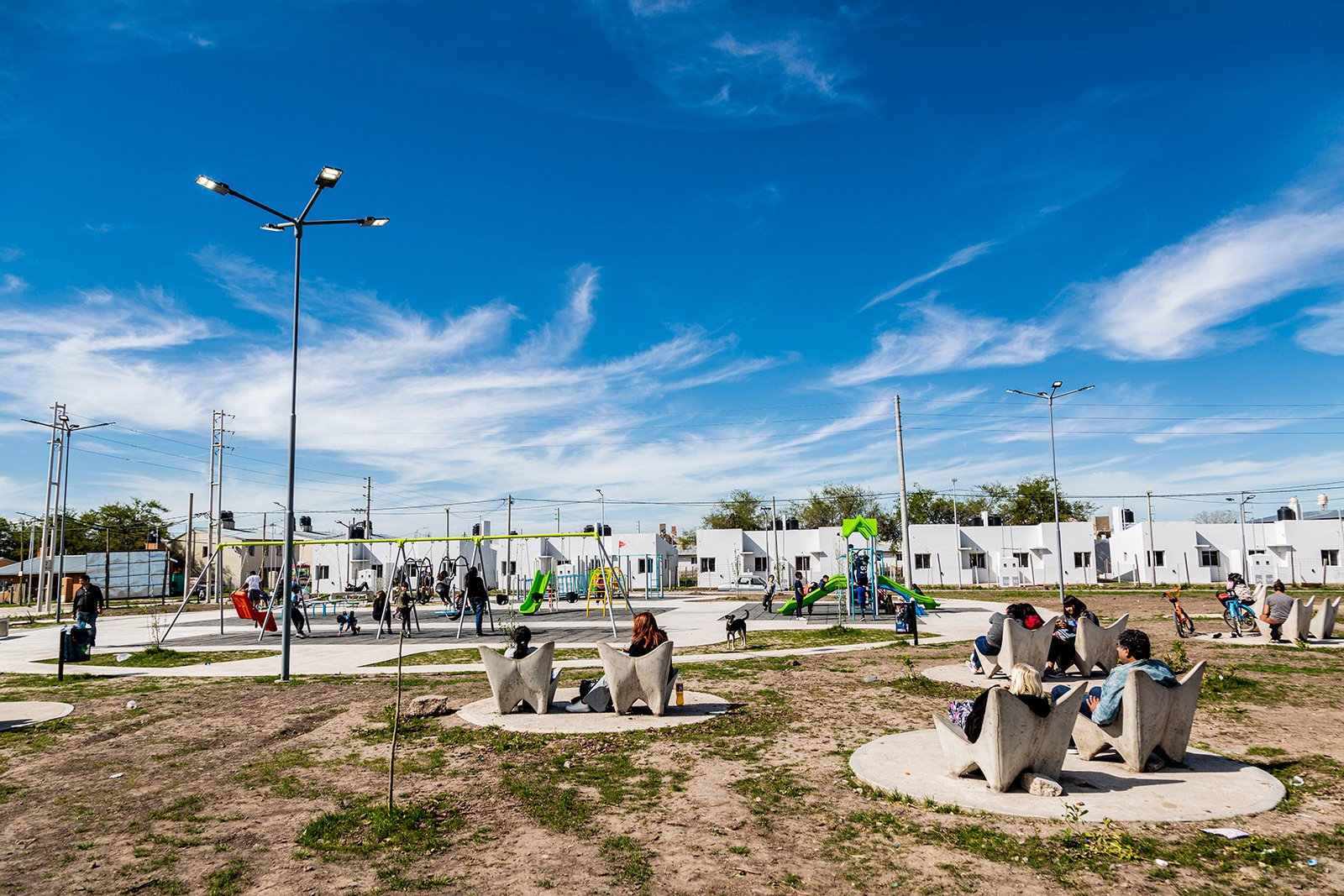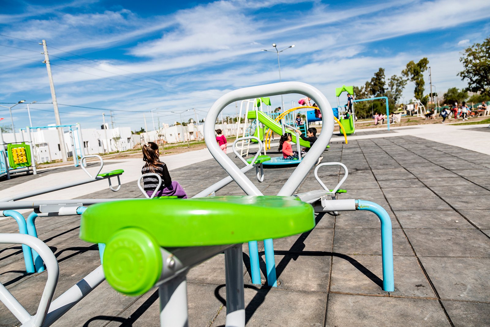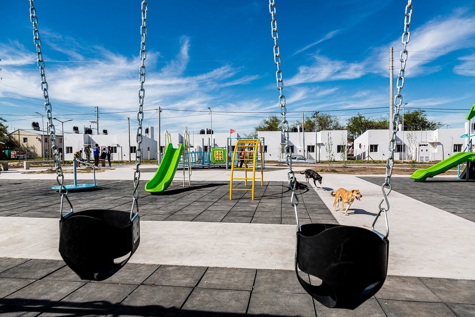 Los trabajos incluyeron la instalación del nuevo piso para facilitar el juego de las niñas y los niños que ya utilizan los toboganes, las hamacas y las estructuras didácticas. Además en el lugar se agregaron veredas y accesos desde el barrio.