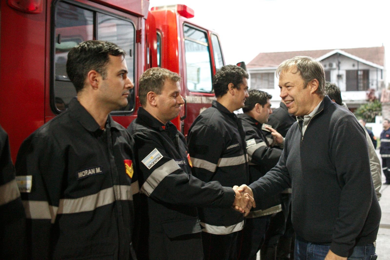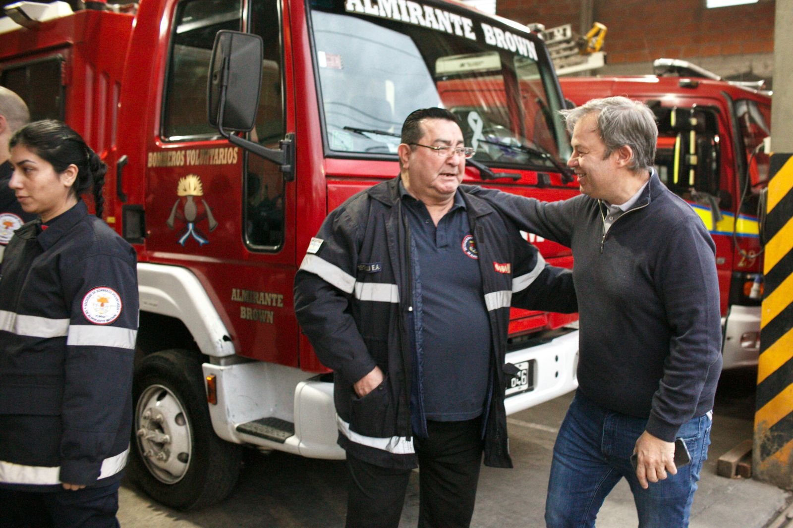 La visita se llevó adelante en la sede ubicada en la avenida San Martín N° 1107, donde el jefe comunal fue recibido por el presidente de la Sociedad de Bomberos Voluntarios de Almirante Brown, Juan Carlos Rodríguez, y el comandante Gral. del Cuerpo de Bomberos Voluntarios «Libertador Gral. Don José de San Martín», Eduardo Bertelli.