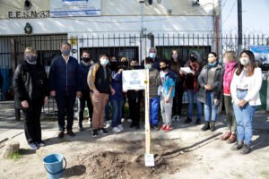 La jornada se llevó adelante en la Escuela Secundaria Nº 33, ubicada en Retiro 2565, donde el jefe comunal junto a la comunidad educativa realizaron la plantación de árbol en la puerta del establecimiento, con el objetivo de seguir potenciando al distrito como un pulmón verde.