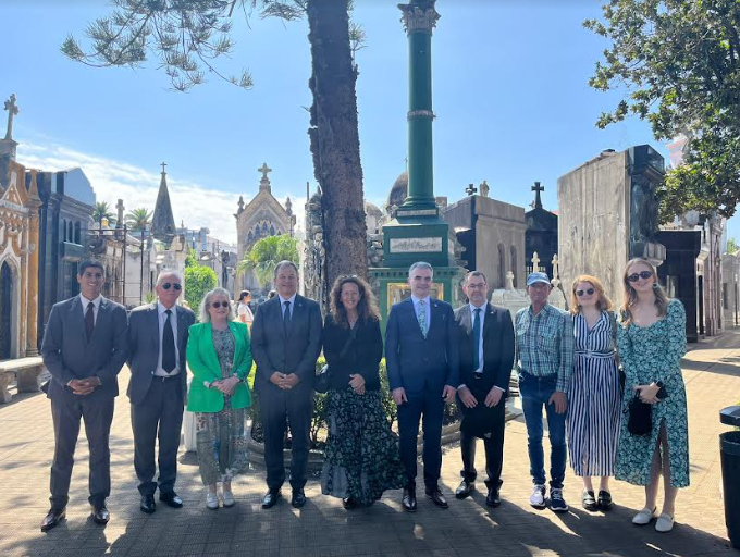 Durante la jornada, que contó con la participación por parte de la delegación irlandesa, de la jefa adjunta de la Misión, Sara Maguire, y el Cónsul, Deirdre O´Flaherty; y el presidente del Instituto de Estudios Históricos y Patrimonio Cultural de Almirante Brown, Emilio Klubus, también se realizó una recorrida por las tumbas de Eva Perón y del ex presidente, Raúl Alfonsín.