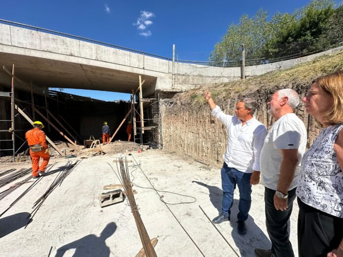 Actualmente se está avanzando tanto del lado Este, como del Oeste, con tareas hidráulicas, la armadura de los muros debajo del puente carretero y de los tabiques internos donde se apoyarán los pisos para el paso nivel peatonal y también con el desmonte y la colocación del intertrabado, entre otros frentes.
