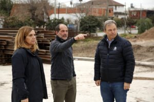 Junto a la subsecretaria de Infraestructura local, Gabriela Fernández, Cascallares recorrió la zona de obra, que se encuentra en un importante estado de avance y donde se está avanzando de forma simultánea con la excavación del túnel debajo de las vías del tren para el paso vehicular y con la creación de los últimos pilotes en la zona central.