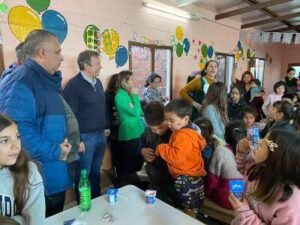 Durante la visita, Cascallares compartió la tradicional merienda con los niños, niñas y familias presentes y también enumeró las distintas obras que se llevan adelante en esta querida localidad, entre ellas nuevos pavimentos, recambio de luminarias LED, avances en la cobertura de cloacas y también de agua potable.