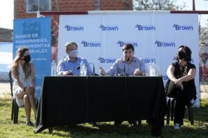 También fueron parte del encuentro, el secretario de Gobierno local, Juan Fabiani, el secretario General, Germán Bonnemezón; el subsecretario de Derechos Humanos, Adrián Arano; la subsecretaria de Agencia de Empleo y Formación Profesional, Eva Sala; el rector de la Universidad Nacional Guillermo Brown, Pablo Domenichini y el vicerrector de dicha Casa de Estudios, Facundo Nejamkis, y la titular de la institución anfitriona, Antonia Aguirre, entre otros. Además de vecinas y vecinos emprendedores que recibieron el equipamiento para mejorar sus labores.