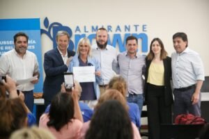 El intendente interino de Almirante Brown, Juan Fabiani, junto a Mariano Cascallares y a autoridades del Ministerio de Justicia y Derechos Humanos de la Provincia de Buenos Aires encabezaron un emotivo acto que incluyó la entrega de diplomas de reconocimiento al personal que se desempeña como promotoras y promotores de la Salud en la Comuna browniana.