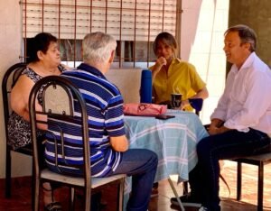 La recorrida se llevó adelante en la calle El Rodeo y 2 de Abril, donde el jefe comunal y la titular de AySA pusieron en servicio tres nuevos módulos que estaban inactivos por falta de mantenimiento y dialogaron –con mates de por medio- con Luis y Bety, dos vecinos de la zona.