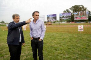 El intendente de Almirante Brown, Mariano Cascallares, recorrió junto al ministro de Obras Públicas de la Nación, Gabriel Katopodis, los avances en la obra de nueve hectáreas del imponente Parque Don Orione, en la localidad de San Francisco de Asís.