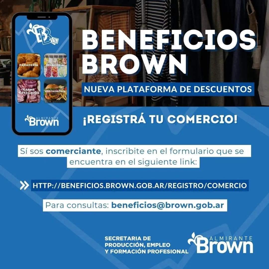El Municipio de Almirante Brown informó que más de un centenar de comercios de veinte diferentes rubros ya son parte del programa “Beneficios Brown”, una plataforma digital donde los comerciantes pueden promover sus negocios además de ofrecer importantes promociones y descuentos a las familias del distrito.