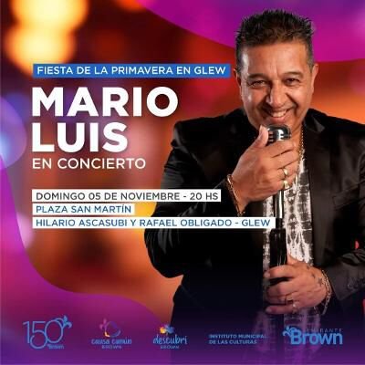 Finalmente, a las 20, la cumbia de Mario Luis en un show inolvidable colmará la plaza y será el broche de oro del tradicional festejo que año tras año reúne a vecinos de Almirante Brown para celebrar la llegada de la primavera al aire libre. Todos los espectáculos artísticos son con entrada libre y gratuita.