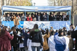 A continuación, tuvo lugar el Acto de Promesa a la Bandera de las y los alumnos de cuarto año de las escuelas secundarias de nuestro distrito. Se entonaron las estrofas del Himno Nacional Argentino interpretado por la Banda Militar «Paso de los Andes» del Regimiento de Infantería Mecanizado N° 7 y se desarrolló una Acción de Gracias y Bendición, a cargo del presbítero Arnaldo Villalba a cargo de la Parroquia Inmaculada Concepción.