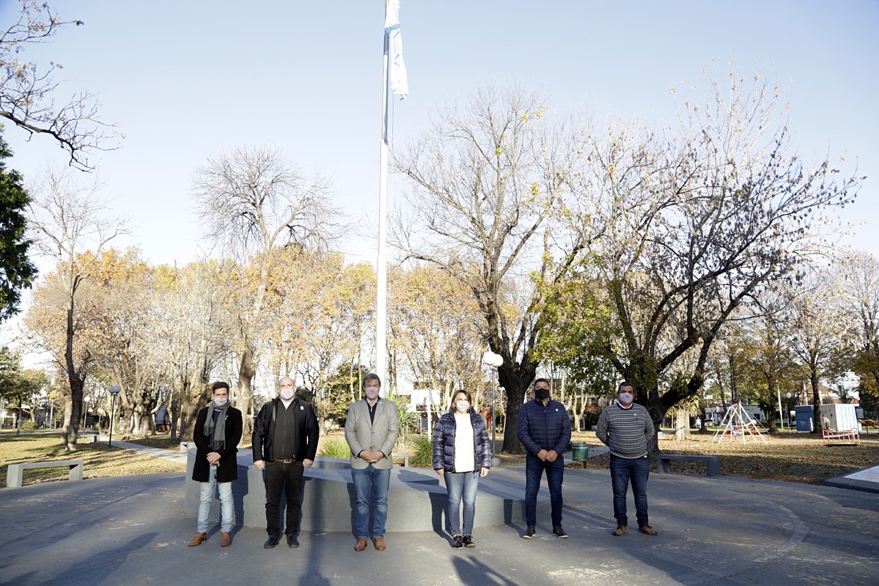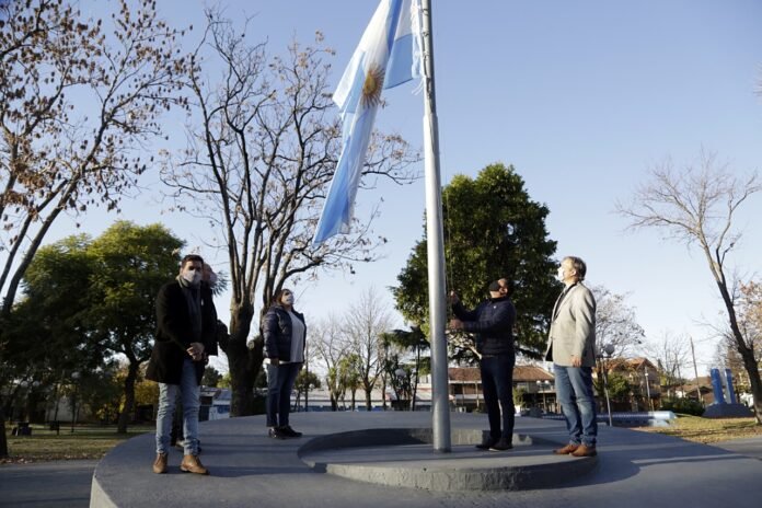 El homenaje se realizó en la Plaza 25 de Mayo de la localidad de Rafael Calzada bajo un cielo celeste y en un día patrio soleado.