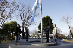 Durante el acto, que respetó las medidas de prevención del Covid-19, se procedió al izamiento de la Bandera Nacional y al emotivo homenaje hacia los integrantes de la Primera Junta que aquel 25 de mayo de 1820 se reunieron en el Cabildo de Buenos Aires.