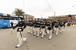 Posteriormente se produjo la presentación de Ballets de nuestro distrito con Chacarera a Brown. Y se dio inicio al desfile cívico militar.
