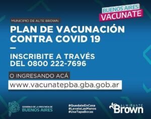En el marco de la intensa campaña que lleva adelante el Municipio de Almirante Brown para promover la inscripción al programa de vacunación público, gratuito y optativo contra el Covid, ahora las vecinas y vecinos del distrito pueden registrarse y recibir información y asesoramiento través del 0800-222 7696.