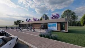 El espacio contará con sector de recepción y de Cajas, áreas de Espera y de Atención al Público, sala de Reunión, tres oficinas, Cocina y Sanitarios. Veredas exteriores, rampas de acceso, césped en el perímetro exterior, iluminación LED y mobiliario urbano.