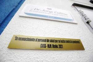 En la inauguración de las nuevas instalaciones, las autoridades del Hospital también honraron con una placa al Dr. Jorge Calima, pionero del hospital e histórico y notable médico oncólogo.
