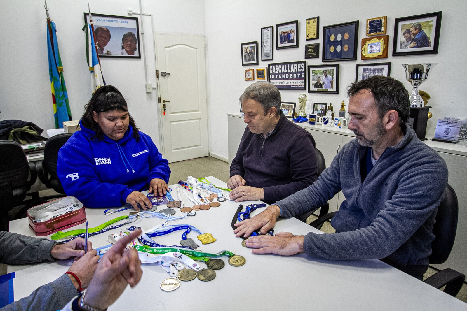 El intendente de Almirante Brown, Mariano Cascallares, mantuvo un encuentro con la atleta Florencia Sánchez que se desempeña en la disciplina Lanzamiento de Martillo y que se encuentra participando de un torneo Sudamericano en Perú.