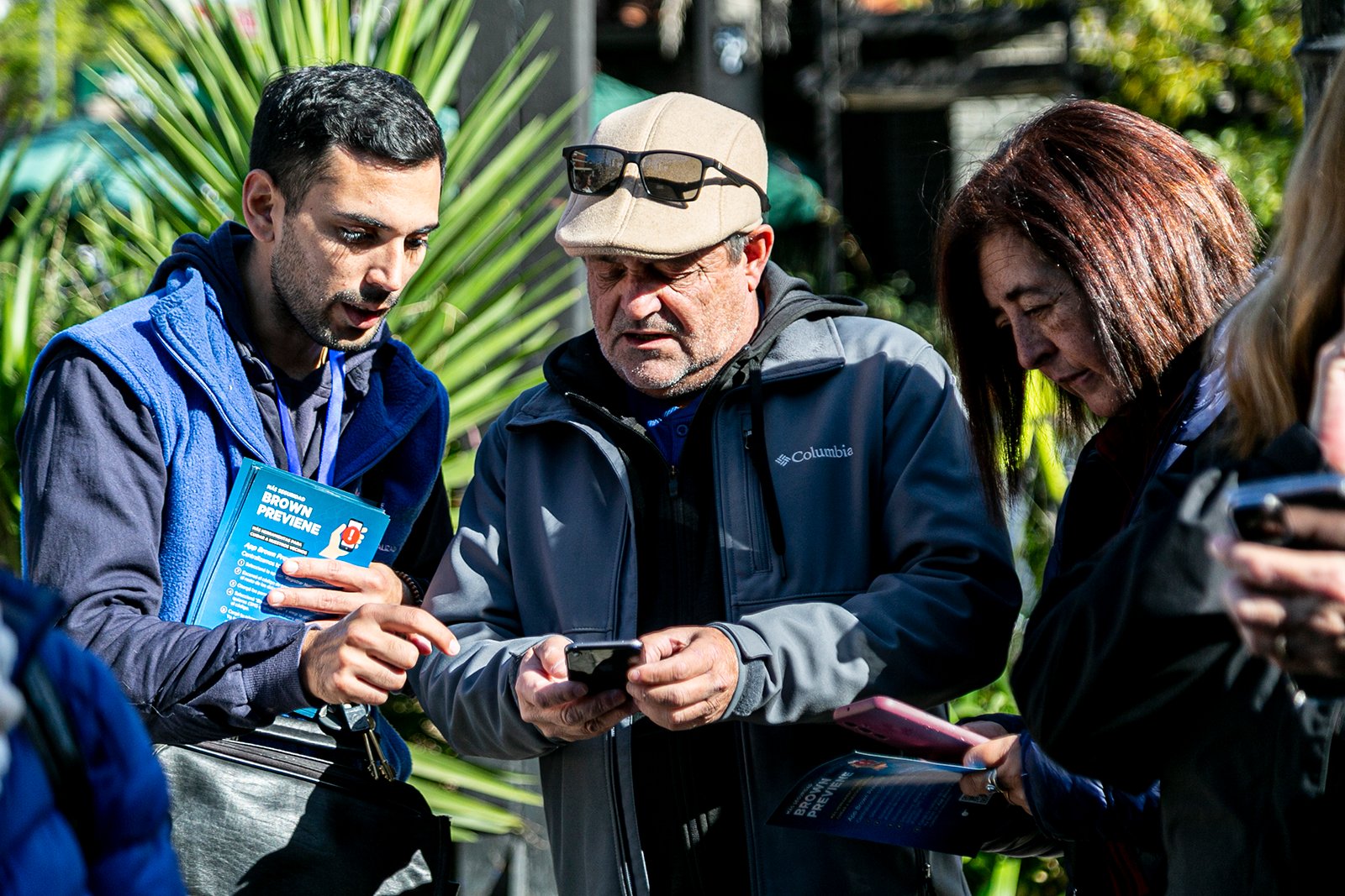 El Municipio de Almirante Brown realiza charlas con vecinos y vecinas para informar, capacitar y alentar sobre el uso de la aplicación “Brown Previene” que ofrece entre los servicios más importantes el acceso gratuito a las más de 600 Alarmas Comunitarias distribuidas en barrios de las doce localidades brownianas.
