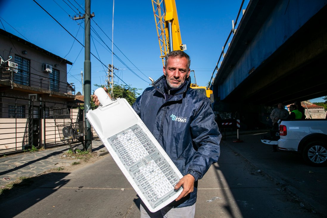 “En Almirante Brown seguimos trabajando muy fuerte en los barrios y en las localidades para potenciar la iluminación utilizando las nuevas tecnologías. En este caso, se están renovando las luminarias sobre el puente de Claypole y también en las arterias colectoras”, remarcó el intendente Mariano Cascallares.