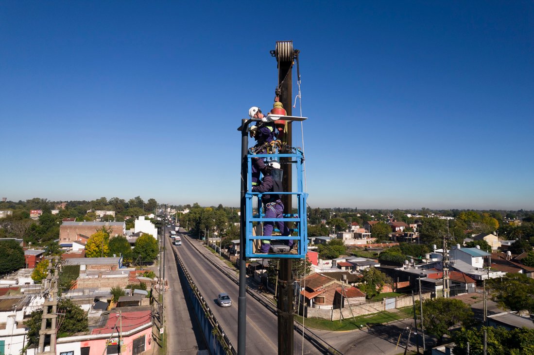 El trabajo está siendo realizado por personal de la Dirección de Luminarias, dependiente de la Subsecretaría de Infraestructura municipal, en las columnas ubicadas en la zona de la colectora en ambos lados del puente, una iniciativa que permitió avanzar con los trabajos sin cortar el tránsito.