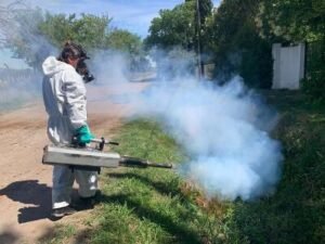 Cabe consignar que también se lleva adelante el control de estos insectos vectores en su etapa adulta con fumigaciones aéreas o también llamadas rociados espaciales en espacios públicos, zonas descampadas y arroyos en las localidades de Almirante Brown. En paralelo, además, se realizan tareas en el Cementerio Municipal mediante la utilización de una termonebulizadora.