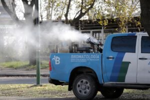 Asimismo, también se lleva adelante el control de estos insectos vectores en su etapa adulta con fumigaciones aéreas o también llamadas rociados espaciales en espacios públicos, zonas descampadas y arroyos en las 12 localidades de Almirante Brown. En paralelo, además, se realizan tareas en el Cementerio Municipal mediante la utilización de una termonebulizadora.
