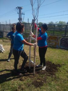 En el marco del histórico plan de forestación que lleva adelante el Municipio de Almirante Brown en las localidades y en los barrios, se plantaron especies exóticas y nativas en el circuito aeróbico de la Estación de Claypole.