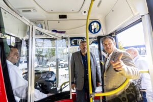 El ministro de Transporte bonaerense, Jorge D´Onofrio, y Mariano Cascallares destacaron que todas las líneas locales del autotransporte de pasajeros de Almirante Brown poseen cuatro cámaras de monitoreo y un botón de pánico, un sistema que ubica al distrito a la vanguardia en toda la región.