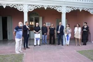 Momentos después, Mariano Cascallares y Juan Fabiani, acompañados por Jawtuschenko, la diputada Vilotta, Klubus y Agis descubrieron una placa conmemorativa del 150° aniversario del emblemático chalet estilo suizo.