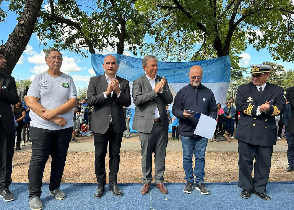 Allí, las autoridades se ubicaron en el Monumento al Soldado y colocaron ofrendas florales en los cenotafios de los héroes brownianos caídos: Omar Chaile, Ignacio María Indino, Aldo Moreno, Macedonio Rodríguez y Mario Rodríguez.