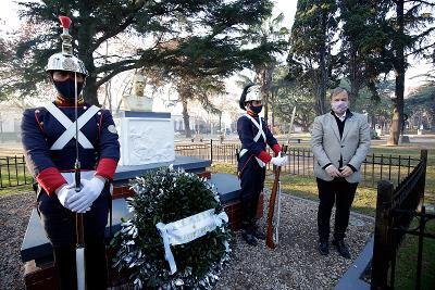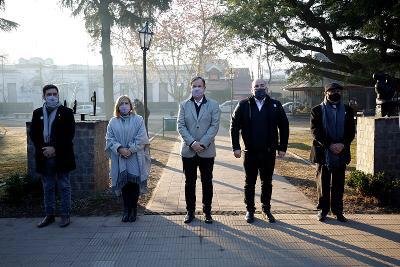 El intendente de Almirante Brown, Mariano Cascallares, encabezó esta mañana un emotivo homenaje a Manuel Belgrano en el Día de la Bandera. El acto oficial, respetando todas las medidas sanitarias de prevención del Coronavirus, se desarrolló en la Plaza Belgrano de la localidad de Burzaco donde se ubica el primer monumento a la Bandera de nuestro país.